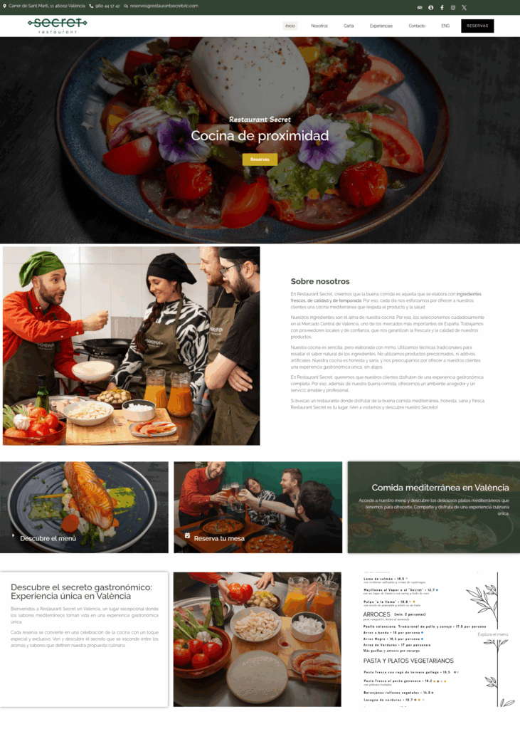 El resultado fue un sitio web listo para atraer visitas, generar reservas y convertirse en el auténtico escaparate digital de Restaurante Secret.