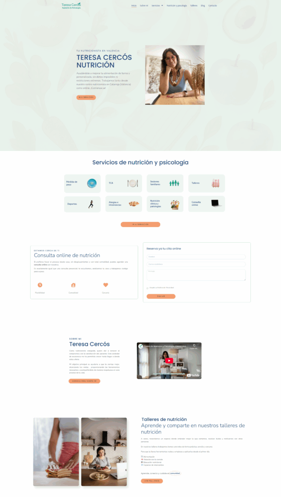 El resultado es una web profesional y atractiva, que refleja la identidad de Teresa Cercós y facilita la conexión directa con sus clientes, combinando información clara con una experiencia de usuario fluida.