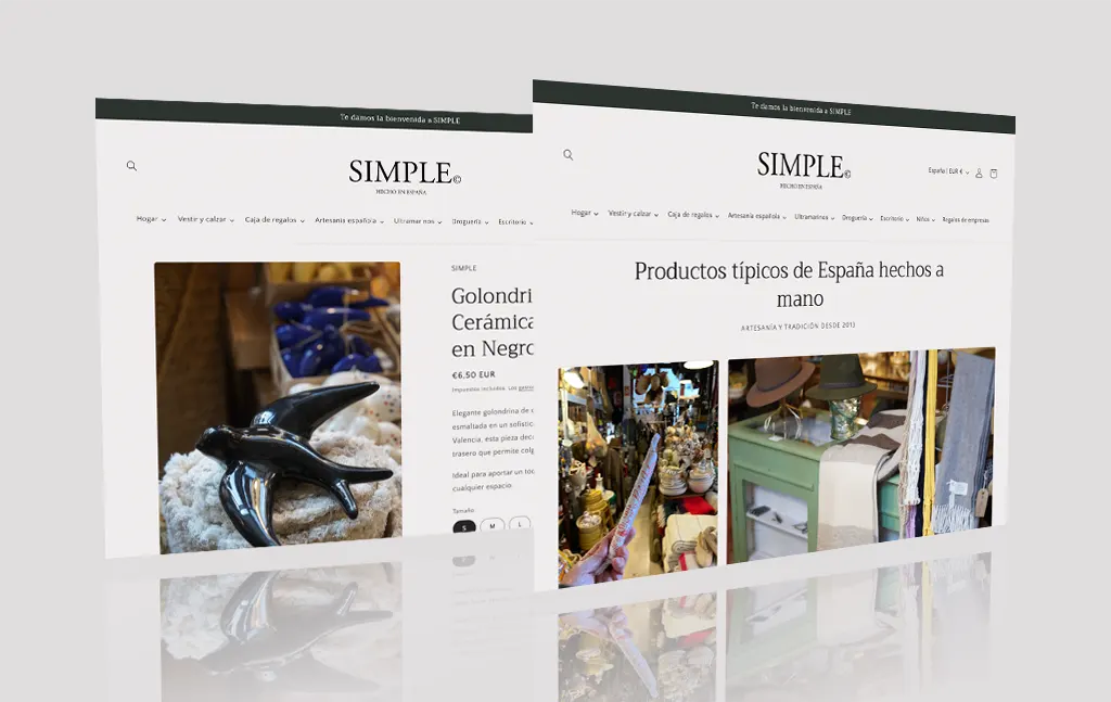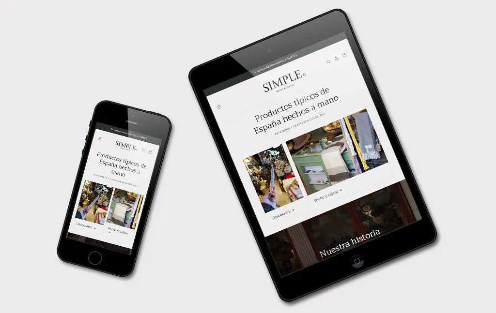 Mock-up y desarrollo completo de la tienda online de Tienda Simple con la inclusión de productos elegidos por el cliente y pasarela de pago completa con gestión de envíos.
