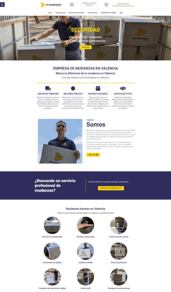 Mudanzas El Propietario es una empresa familiar con sede en Valencia, especializada en servicios de mudanzas y transportes. Fundada en 1956, cuenta con más de 60 años de experiencia, lo que la ha consolidado como una opción confiable para quienes buscan un servicio profesional y de calidad.